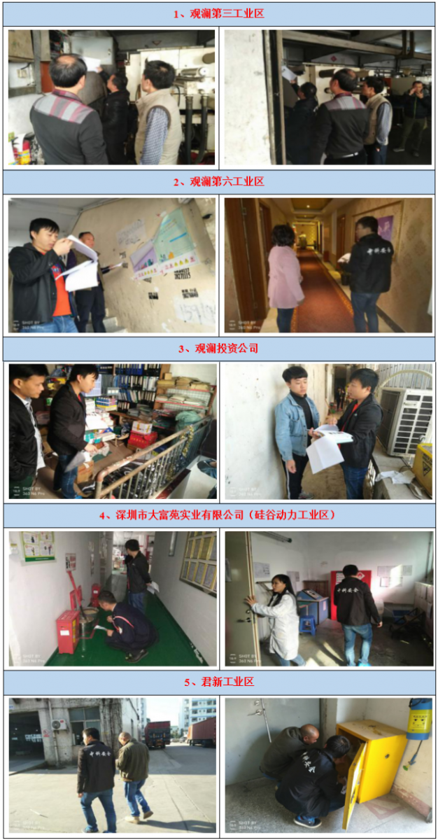 根据龙华投管公司关于安全生产工作的部署,为了加强所辖工业区的生产、经营的安全监管工作,“让专业的人、干专业的事”,龙华投管公司组织深圳市中科安全技术咨询有限公司专家对所辖工业区进行安全隐患检查工作,为下一步安全管理工作打下基础。为此,深圳市中科安全技术咨询有限公司相关专家于2018年1月15日~2018年1月17日对5家园区(物业)进行隐患排查与复查,具体情况如下: